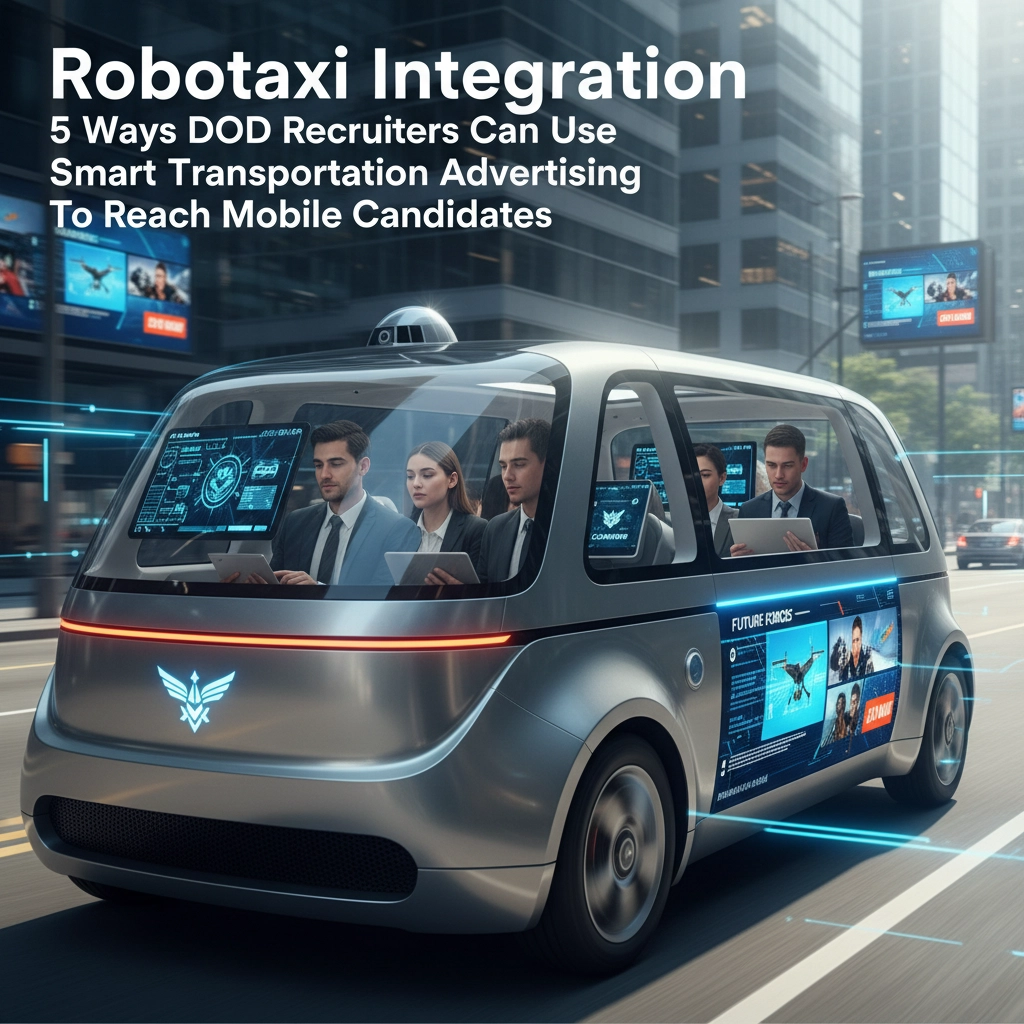 SEO Tags: DOD recruitment, robotaxi advertising, smart transportation, military recruitment, autonomous vehicle advertising, transportation marketing, defense recruitment strategies, mobile candidate targeting